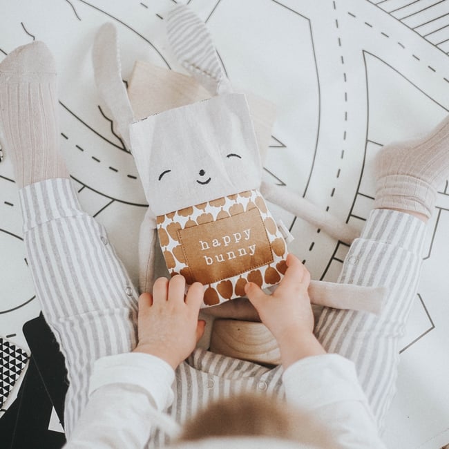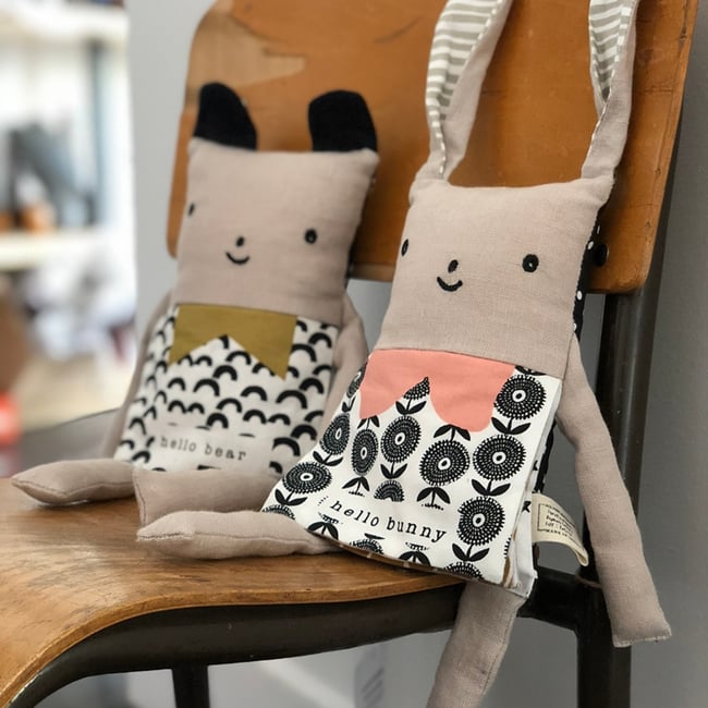 We love this clever bunny Flippy Friend from Wee Gallery which is a soft toy and book in one. Babies will love to lift the flaps to follow bunny as they go through their daily routine.